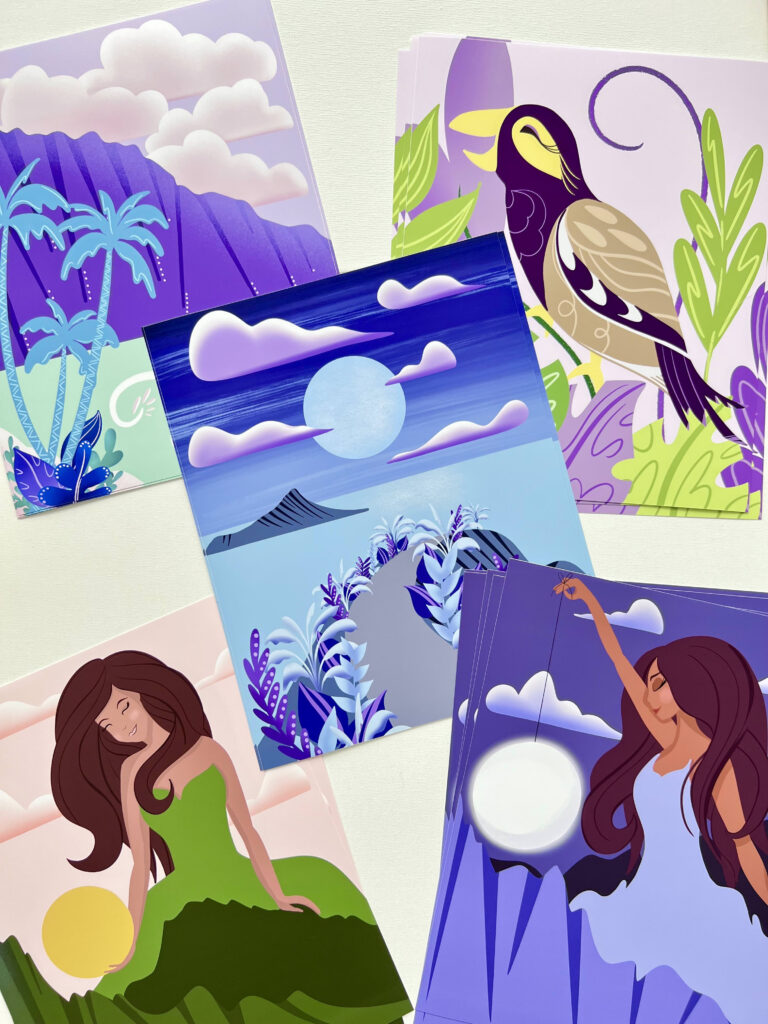 Melissa Meyer is an illustration artist who designs out of her home studio in Kapolei, Hawaii. Her storybook style illustrations are inspired by her tropical location. Melissa specializes in creating cute characters – whether on custom stickers, art prints, or in one of her stories. She is currently developing several picture books. Her island-inspired stationery and art prints can be found in stores throughout the Hawaiian Islands.